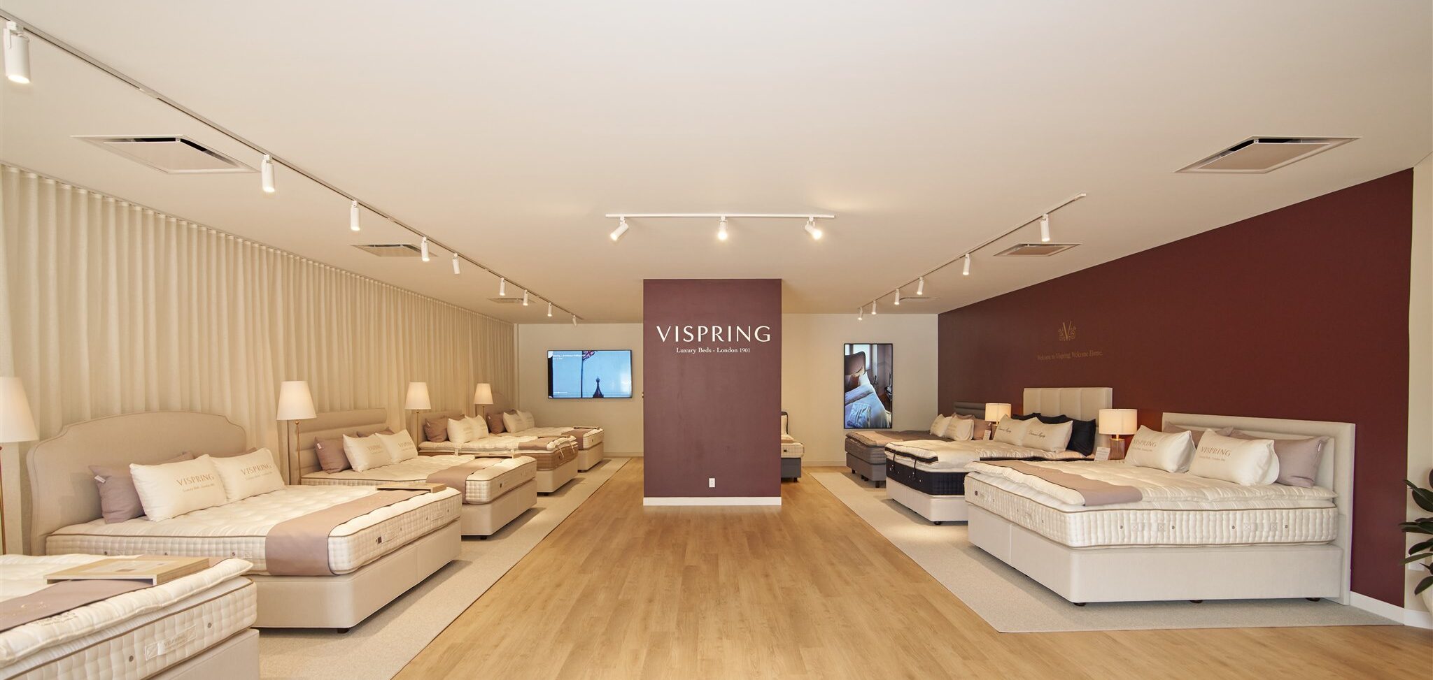 The new flagship showcases Vispring's collection of handcrafted beds, including the Diamond Majesty, Masterpiece Superb, Signatory Superb, Cashmere Superb, Sublime Superb, Tiara Superb, Regal Superb, Baronet Superb, and Monochrome Look.. Each piece exemplifies Vispring's commitment to exceptional craftsmanship and the finest natural materials.